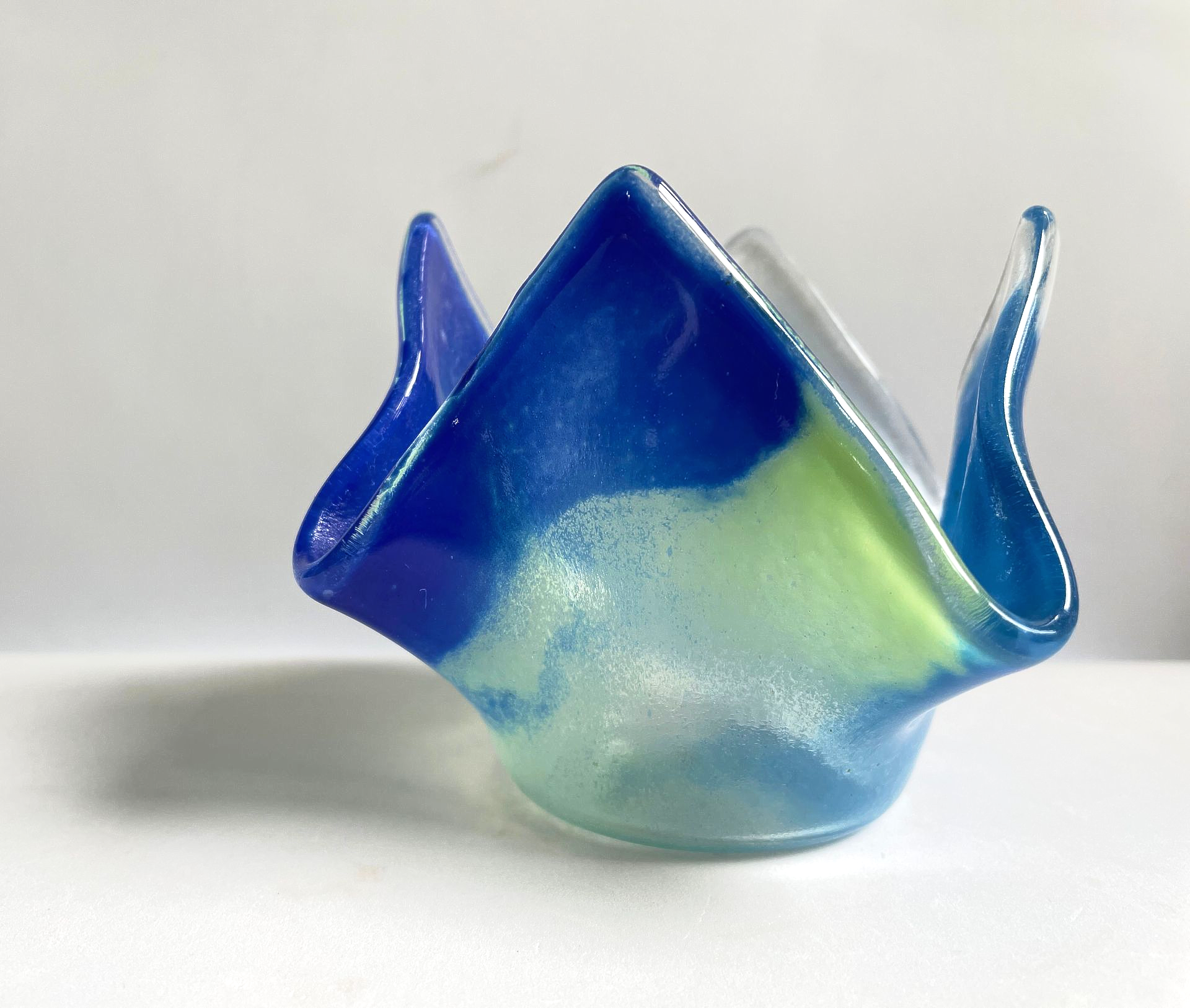 I wanted to create a colorful glass abstract bowl, a one-of-a-kind piece of glass art that could be functional.